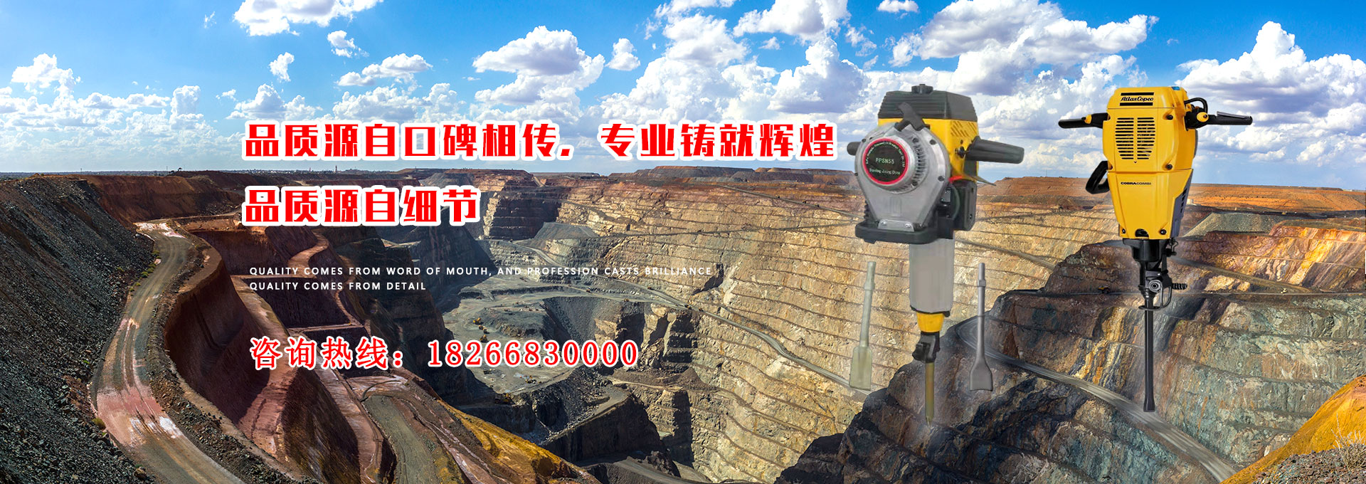 本公司是集開發(fā)、制造和銷售于一體的現(xiàn)代化公司,主要生產(chǎn)鑿巖機(jī)和破碎鎬,適用于礦山開采和施工作業(yè)